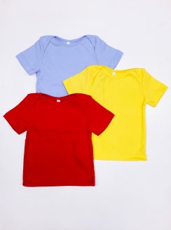 Футболка из мягкого трикотажа. Ворот лодочкой, что дает возможность пролезть любой голове малыша. Цвета: Белый, молочный, голубой, розовый, желтый, бирюза.