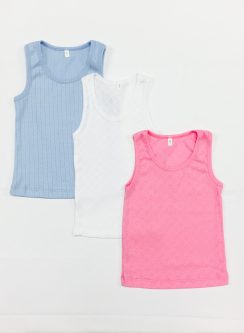 Майка для девочки из рибаны с ажурным рисунком.