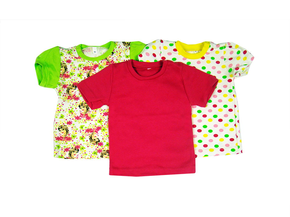 Комплект "КАРАМЕЛЬКИ": футболка короткий рукав, 3 шт. (кулирная гладь с лайкрой). Яркие футболки для девочки.