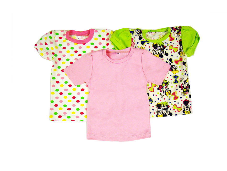 Комплект "КАРАМЕЛЬКИ": футболка короткий рукав, 3 шт. (кулирная гладь с лайкрой). Яркие футболки для девочки.